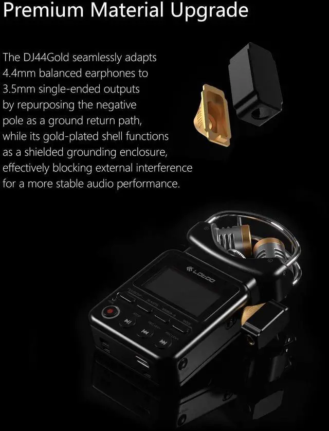 New Color Scheme: In the HiFi era where 4.4 mm interfaces have become standard for players and earphones, the 3.5 mm jack still retains its irreplaceable charm. The DJ44Gold audio adapter Black Gold Edition features a solid gold-plated copper grounding shell paired with a black top cover, creating a striking new aesthetic.