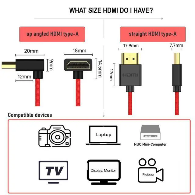Coiled cable length 30cm/12in, extending up to 60cm/24in ^^ [Connectors] Standard full-size HDMI 2.1 type A on both ends, straight to up angled L-shape, compatible with HDMI 2.0 and HDMI 1.4. Lossless and stable HDR, 3D, audio, video, and Ethernet signal transmission