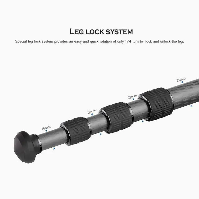 Versatile Carbon Fiber Tripod: Our leofoto carbon fiber camera tripod features a telescopic design. This lightweight monopod is the perfect travel companion, weighing only 2.03 lbs yet supporting up to 17.64 lbs