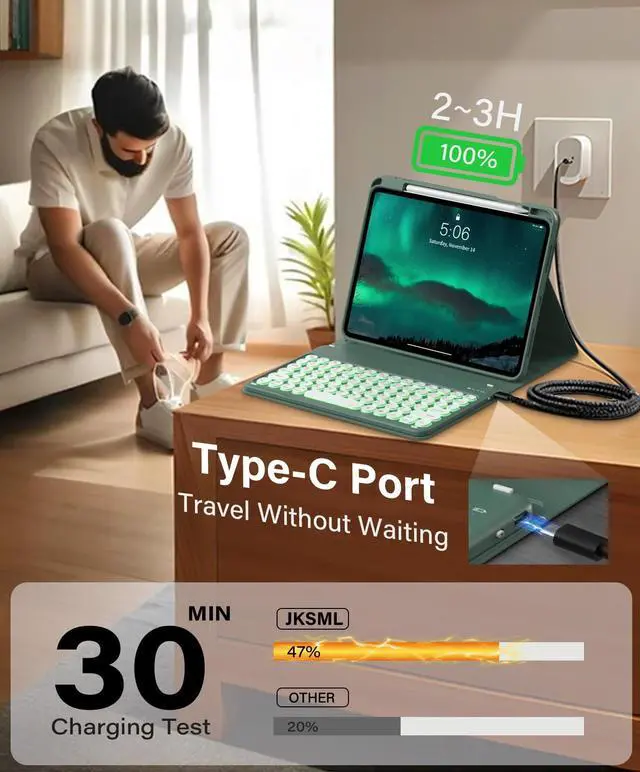 ^^ LongLast Power: 90+ Hours ReadyGerman military 450mAh battery with 1 min auto-sleep cuts wasted power by 80%. Enjoy 90+ hours use per 2-3H chargeforget to turn off your iPad Air 11" M3 2025 or M2 2024 keyboard? Instantly wakes with one click for urgent work or travel days. Always powered, always focused. ^^ Multi-angle Stable UseReinforced magnets hold your iPad Air 11-inch or 10.9" tablet secure at any angleeven upside down. 3 case slot (110/120/130) keep views stable for study notes or video calls. Tested against daily bumps and shakes across all compatible models.