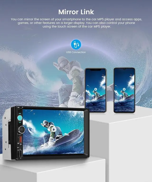 Mirror Link: This double din car stereo supports wireless CarPlay and Android Auto connection, providing instant access to phone contacts, emails, map navigation, music and videosfully meeting all your in-car smart needs. It also supports Mirror Link function, allowing the wireless CarPlay double din stereo to mirror your phones screen to the car radio display, realizing seamless smart connection for daily commutes and road trips ^^ Video Playback & Same