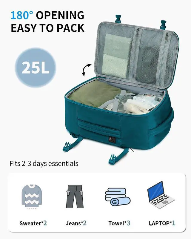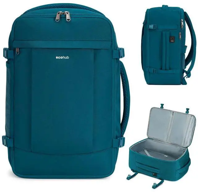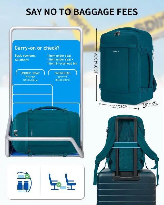 Easily Meet Airline Size Restrictions Designed for low-cost carriers United Airlines this 17-inch backpack fits perfectly under the seat fully complying with the strict 41 linear inches standard Its exclusive suitcase-style expandable structure plus external compression straps hold 4-7 days of clothing 5 sets of outfits shoes toiletry bag while still fitting under the seat. Skip checked baggage fees and board with zero questions ^^ End the Hassle of Rummaging This backpack features 16 scientific compartments for organization enthusiasts an independent shockproof laptop compartment fits 15.6 -inch laptops tested for larger sizes a hidden anti-theft back pocket for quick passport wallet access side water bottle mesh pockets and a top quick-access compartment The main compartment opens fully like a suitcase.