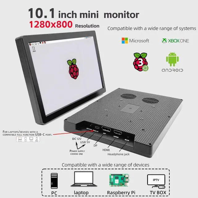 Touchscreen Monitor: VIEWMEI 10.1 inch portable monitor features a high-resolution 1280x800 IPS display, delivering crisp visuals and vivid colors with wide viewing angles. Ideal for Raspberry Pi, Jetson Nano, and PC projects ^^
