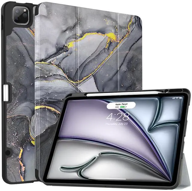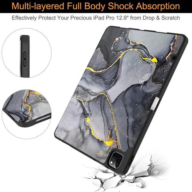 Soke Case for iPad Air 13 Inch (M4/M3/M2,2026-2024), iPad Pro 12.9" 6th/5th Generation with Pencil Holder(2021 2022 Release)-[Apple Pencil Charging + Auto Wake/Sleep] Soft Back Cover, Black Marble