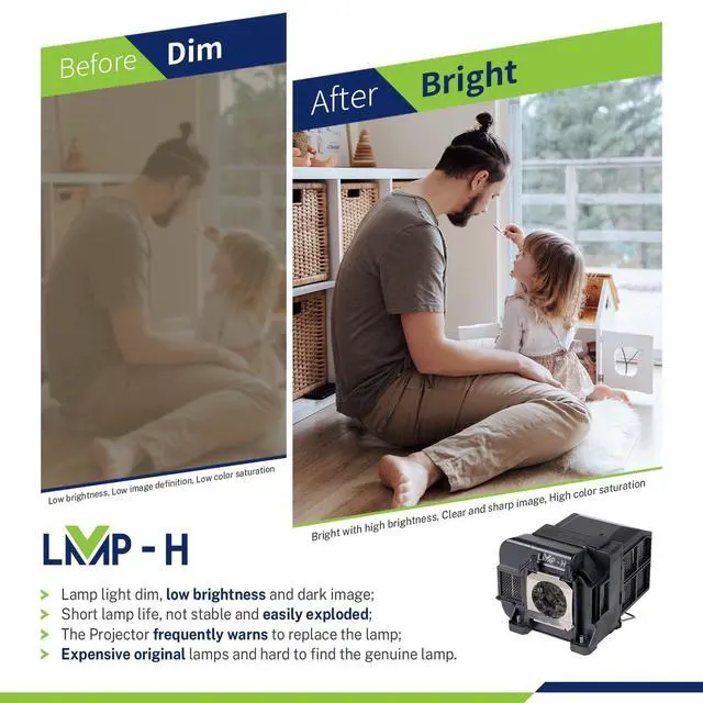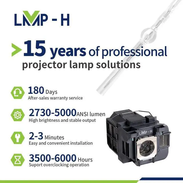 Compatible Modelsfor Epson Powerlite 1940W Powerlite 1945W Powerlite 1950 Powerlite 1955 Powerlite 1960 Powerlite 1965 EB-1930 EB-1940W EB-1945W EB-1950 EB-1955 EB-1960 EB-1965 EB-1965ND H470 H471 H471B H472 H473A H474A H474B H490 H491A ^^ LMP-H projectors'bulbs are made of the highest quality materials and have the same functions as your original bulbs. They are perfectly matched and compatible with your projector ^^ All projector bulbs are equipped with enclosures instead of bare bulbs. Our bulbs feature an optimized filament design, which helps prevent the machine from overheating or experiencing abnormal temperatures, thereby protecting the bulbs and the projector ^^ When installing a new light bulb, wait for the old bulb in the projector to cool down before replacing it.