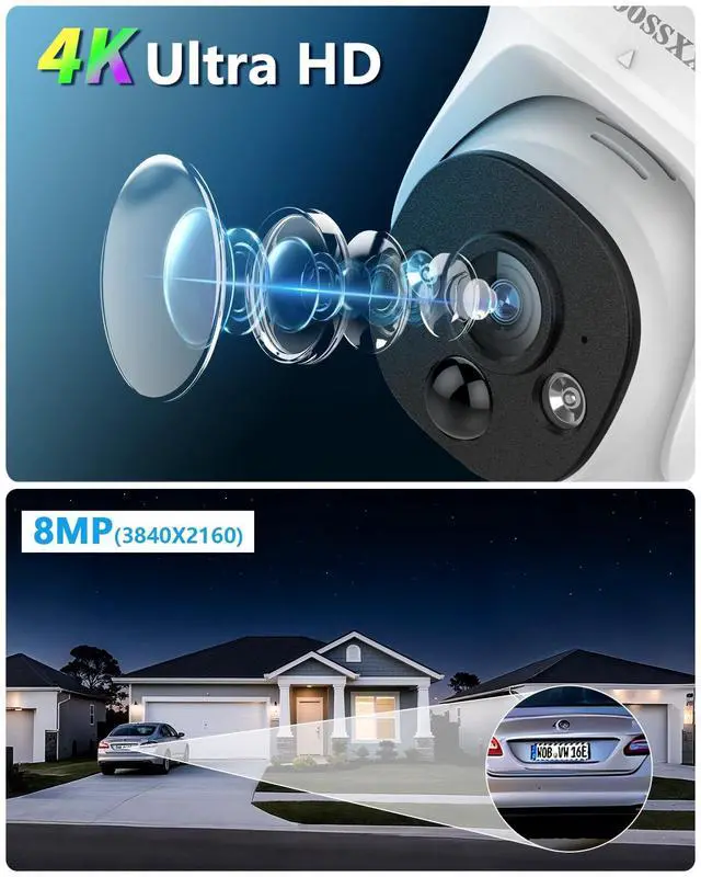 {4K/8MP Ultra HD } Super HD 4K security camera Capture crystal clear videos day & night. With advanced IR lights, you can see up to 100ft in the dark, this 4K security camera system gives you clear vision day or night.