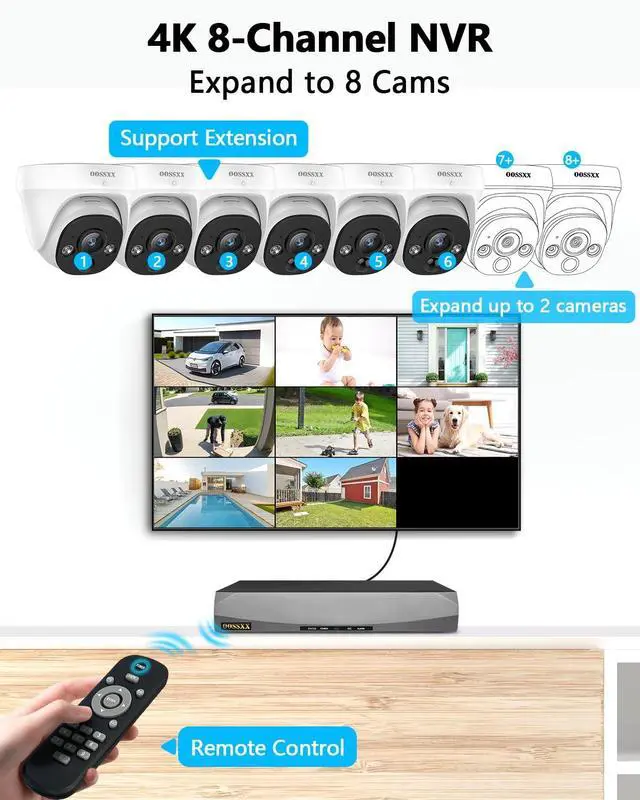 ^^ {130 Ultra Wide-Angle Lens Equipped} Outdoor security camera features an advanced 130 wide-angle lens, providing broader coverage and reducing blind spots. Ideal for yards, house, offices, and parking lots that need full-area monitoring. ^^ {Precise PIR Motion Detection} Sensitive PIR motion sensor accurately detects people, animals, and other objects in the monitored area, reducing false alerts by 99%. When the indoor camera detects intruder activity, it triggers an instant alert or starts recording, providing efficient and real-time home security system protection. ^^ {Dual Power Supply Choice} OOSSXX PoE camera system offers dual power options: PoE Ethernet and Power Connector. The PoE Ethernet cable supports up to 200 feet (60 meters) of transmission, while the power connector extends the range to 660 feet (200 meters). This dual power setup enhances stability and coverage, making it perfect for extending Ethernet transmission distance. ^^ {Plug & Play PoE System} The security camera outdoor system comes with a 60feet Ethernet cable and uses PoE technology. Simply connect the IP camera to the NVR port with a single cable that transmits both data and power, and you'll see recorded and live views on an HDMI monitor in seconds. ^^ {Free APP No Month Fee} Download the free app "Honestview" from App Store on your smartphone. With an internet connection, you can watch the videos remotely from anywhere on your phone (IOS&Android), PCs, or tablet.