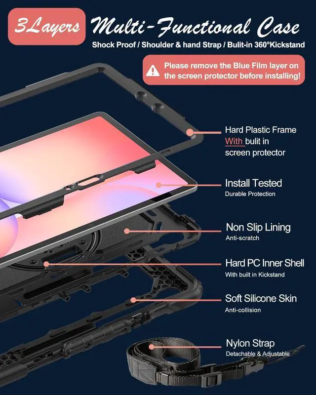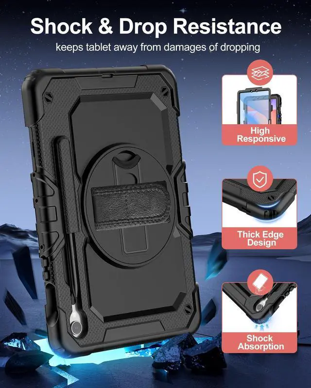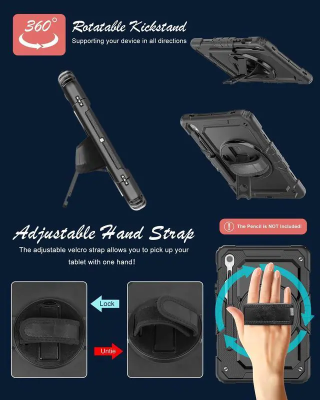 Full Protection: The Case for Samsung S10 Lite/ S10 FE/ S9 FE Tablet Case is composed of a soft outer silicone, a rigid PC inner shell and a top PC frame and comes with screen protector (optional), providing full-body protection for Galaxy Tab S10 Lite/ S10 FE/ S9 FE 10.9 inch and easy to install. Not only shockproof/durable but also comfortable hand feeling ^^ Soft Hand Strap & Rotating Stand: The Case for Galaxy Tab S10 FE/ S10 Lite/ S9 FE/ S9 comes with a stable stand and rotating handle, hang it anywhere for your better entertainment, make your hands free. 360 Rotating Kickstand provides multi-angle viewing, with soft hand strap, case for Galaxy Tab S10 FE/ S10 Lite/ S9 FE 10.9 '' tablet case for landscape/portrait viewing, typing, suited for classes/meetings, working, gaming with kids ^^