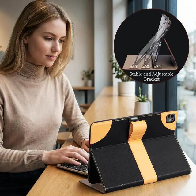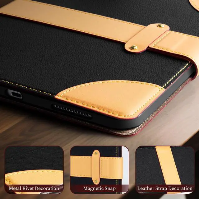 This dual-layer defense keeps your device looking new for years, whether in your bag, on your desk, or during travel. ^^ [PRECISE ACCESSSMART FUNCTION]-Enjoy full and unobstructed access to all ports, buttons, speakers, and cameras thanks to the exact-cut design. The ingeniously engineered folio can be folded into multiple, stable viewing angles perfect for typing, watching videos, or making calls. Additionally, the built-in smart magnet provides auto wake/sleep functionality, instantly saving your iPad's battery life and offering seamless control.