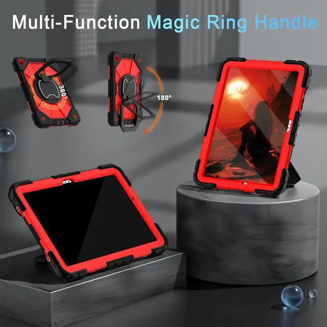 FOR GALAXY TAB A9+ CASEONLY compatible with samsung a9 plus tablet case 11 inch 2023 released (Model: SM-X210/X216/X218). Not fit any other tablet! ^^ PREMIUM PROTECTIONThis samsung galaxy tab a9+ case is made of shockproof PC & soft silicone(with built-in screen protector), so nice to touch, provides a better grip. Unique shock-proof design keeps your tablet better protected to avoid daily bumps, scrapes, defeat 99% accidental drops, unbreakable! ^^ 360 ROTATING STAND PENCIL HOLDERGalaxy a9 plus case with a rotating handle that also folds 180 to give you multiple angles between 25-85 degrees of horizontal or vertical orientation, tab a9+ case with pencil holder. Also offers hand hold and hung on wall using by handle function, allow you use or carry much easier, perfect for a variety of people and occasions. ^^ MULTIFUNCTIONAL CARRYING STRAP Kids friendly 11 inch samsung galaxy tab a9 plus tablet case with adjustable shoulder strap will allow you to display your galaxy a9+ case behind car head rest or hang it anywhere for your better entertainment, make your hands free. Perfect for traveling, outdoor activities. ^^ PRECISE CUTOUTSAll controls to easily access all samsung tablet functions without taking your samsung a9+ plus tablet out of the case.