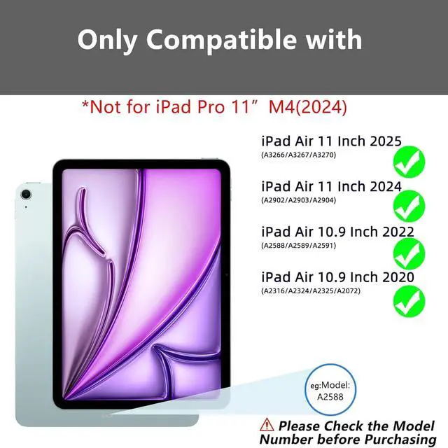 [Perfect Compatible] This for iPad keyboard case is designed for New For iPad Air 11-inch M2 2024 (A2902/ A2903/ A2904), Air 11 Inch M3 2025 (A3266/ A3267 A3270), Air 5th generation 2022 (A2588/ A2589/ A2591), Air 4th generation 2020 (A2072/ A2316/ A2324/ A2325).
