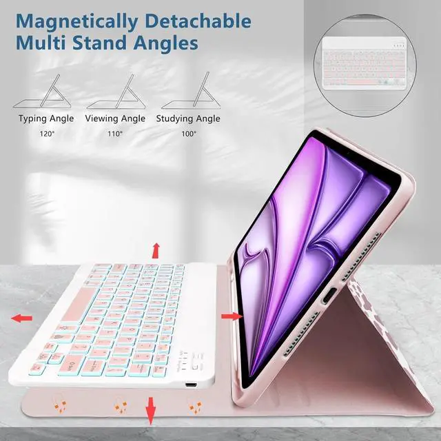 Note: It will not be compatible with other for iPad ^^ [LED Backlit Keyboard] 2 light modes (Monochromatic and gradient light), three-level adjustable brightness and 7 pure led backlit, engaging yourself in a free and relaxed typing experience in any dim condition. The backlight will automatically turn off if you are not typing for over 30 sec to save power ^^ [Rechargeable Keyboard] The for iPad Bluetooth keyboard has a built-in battery with high stability, so you don't need to replace the battery. You can charge the keyboard using the charging cable that comes with the keyboard. The keyboard has a Bluetooth acceptance range of 10 meters. If you don't need to use the keyboard, you can remove it and turn it into a regular for iPad case, which makes for a handy experience ^^ [Automatic Sleep/Wake] This for iPad case will automatically put your for iPad to sleep when you close the front cover of the case. Because an iron keyboard may prevent magnets from attracting to each other, remove the keyboard for optimal sleep/wake up (Detachable, Rechargeable, Magnetically Absorbent) ^^ [Include Content] The box contains the for iPad case, Bluetooth keyboard, keyboard charging cable, and instruction manual.