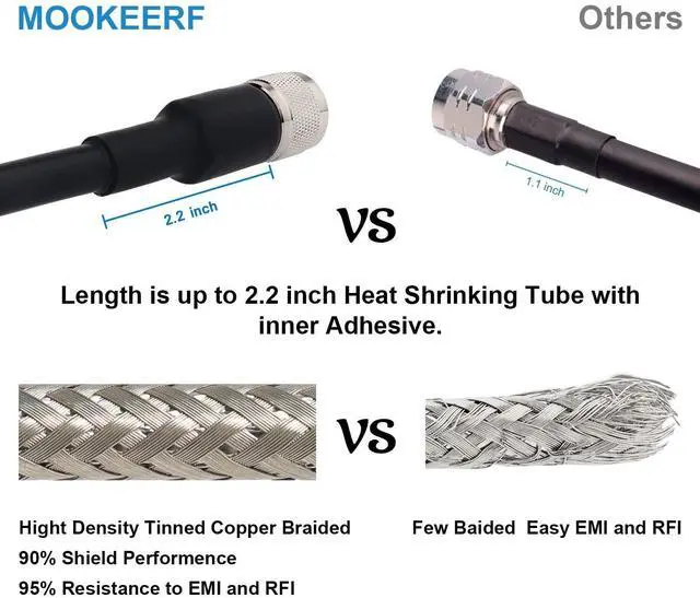 The shell of the uhf connector is made of high-quality copper nickel plated, which could be better in resist oxidation and corrosion. The cable could work in outdoor environments. ^^ Prevent Coming Off-Connection between UHF male connector and kmr400 coaxial cable end is equipped with a 2.2" heat shrink tube and built with adhesive, which is longer than ordinary cables. It could support professionally connection between cable and adapters and prevent connector to pull out. ^^ Applications- This kmr400 pl259 male to male coax cable could be used for CB ham radio, HF amateur radio, marine boat VHF radio, antenna, swr meter, surge protector, Walkie Talkies, etc.