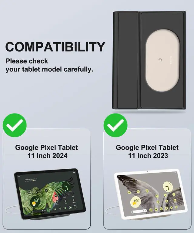 SENGBIRCH for Google Pixel Tablet 11 inch 2023/2024 Keyboard Case - Magetic Keyboard for Pixel Tab Protector Case - Wireless Detachable Keyboard & Soft PU Cover & Rechargeable Battery & Pencil Holder & Adjustable View Angles & Auto Wake/Sleep & Shortcut Keys & Speaker DockExclusively designed for Google Pixel Tablet 11'' 2023&2024 Release Keyboard Case. Not fit any other models. Please check back bottom of your tablet to confirm the model number. Keyboard FunctionallyMagnetically detachable super slim 7mm and light weight bluetooth keyboard with 10M range. And the book cover keyboard tab s9 fe with strong magnetic keyboard gives you a stable platform for typing that won't move easily.