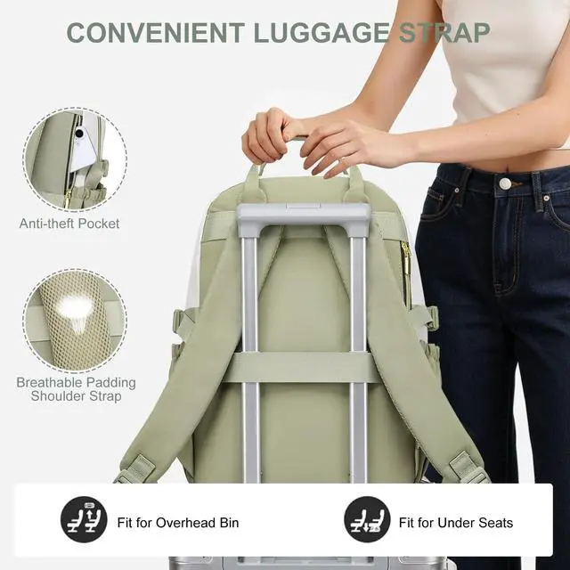 Weight: 1.76 lb. ^^ Dual Oversized Water Bottle PocketsSide pockets designed with adjustable elastic straps let this backpack securely hold large water bottles. Easily carry your Stanley Quencher or favorite water tumbler, and stay hydrated effortlessly on commutes or non-stop working/teaching/studying days ^^ Work Backpack with Padded Laptop CompartmentsFashion Backpack features a dedicated 15.6 -inch laptop compartment and a 9.7 -inch iPad slot with soft padding, providing maximum protection for your devices. It makes carrying your laptop so much easier. Perfect as a nurse backpack, college backpack, work back pack, laptop bookbag, teacher work bag, business backpack ^^ Convenient Personal Travel BackpackWomen laptop backpack is sized to fit under an airplane seat and meets airline carry-on requirements. The luggage strap allows easy attachment to suitcase handles for effortless airport navigation. A hidden anti-theft pocket on the back keeps your valuables secure, giving you peace of mind while traveling ^^ Versatile Backpack & Perfect GiftThis stylish backpack is suitable for all kinds of people and occasions, making it ideal for students, teachers, nurses, professional women, and travelers. Perfect for college, work, travel, business, or daily use, it combines fashion with functionality.