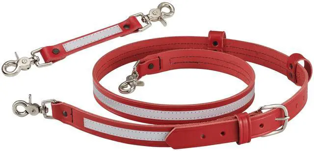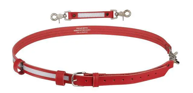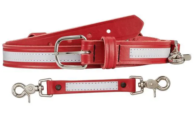 • Fireman Red leather bundle of radio strap and anti sway radio strap with reflective stripe and heavy duty silver hardware.