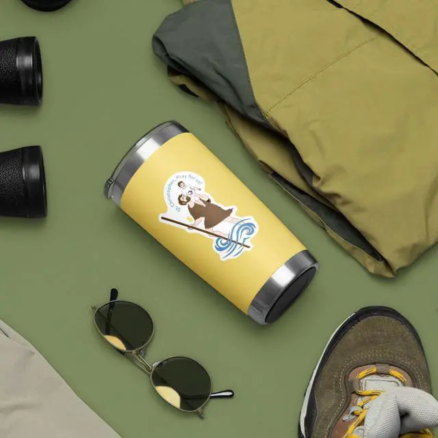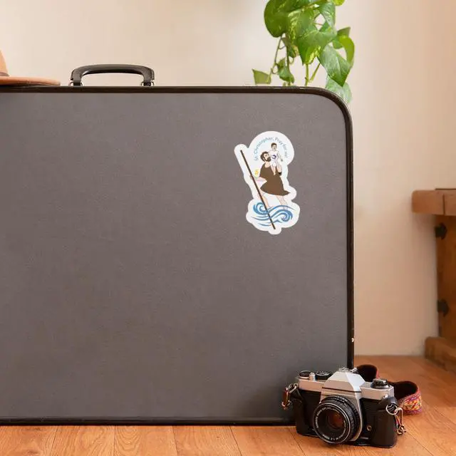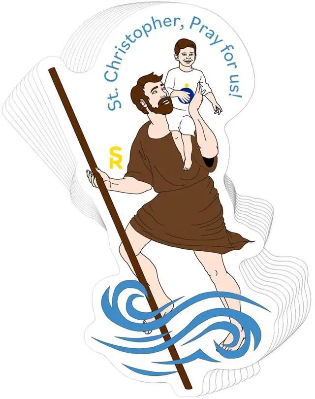 • Our St. Christopher sticker, featuring the words "St. Christopher, pray for us," is a perfect way to keep this beloved saint close. Known as the patron saint of travelers, St. Christopher is often invoked for protection and safe journeys. Add this sticker to your car, luggage, or travel gear as a constant reminder of his guidance and care wherever your adventures take you.