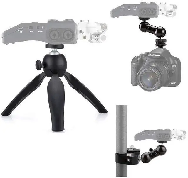 Package included: 1 x Zoom recorder Tripod; 1 x Zoom recorder stand camera hot shoe mount; 1 x Zoom recorder Clamp Mount;