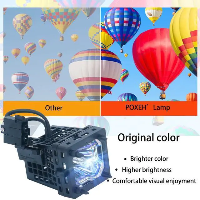 Applicable projector model: For Sony KDS-50A2000 KDS-50A2020 KDS-50A3000 KDS-55A2000 KDS-55A2020 KDS-55A3000 KDS-60A2000 KDS-60A2020 KDS-60A3000. ^^ luminanceWith A new generation of A+ wicks, the brightness is 50% higher than that of ordinary wicks. ^^ LifeWhile increasing the brightness, it can also extend the life, and the highlight time is 3500-4500 hours. ^^ CompatibilitySometimes you may encounter a situation where the new bulb you bought does not work. This is usually caused by inaccurate matching of production parameters. However, our engineers solved this problem by continuously collecting big data and testing. ^^ AssurePXOEH offers a 200-day warranty and if the bulb fails, we will immediately replace it for free or give you a refund. If you have any further information, please contact us!