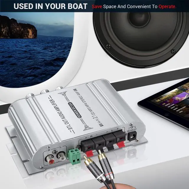 weight: 0.66 pounds/ 0.3 kg. Compact design with exquisite appearance, matt silver case looks fashionable and durable, unique structure design easy to be installed in car, marine, RV, golf cart or home, which save space and convenient to operate. ^^ Great Value Choice-- The package comes with a Facmogu DC 12V 3A adapter valued at over $10, which makes purchasing this ST-838 amplifier a very good deal. You don't have to find a adapter with 5.5 x 2.5 mm plug in your pile of old power adapters or you don't have to pay for another one. Besides, just enjoy peace of mind with 12 months guarantee period & lifetime product support & excellent customer service.