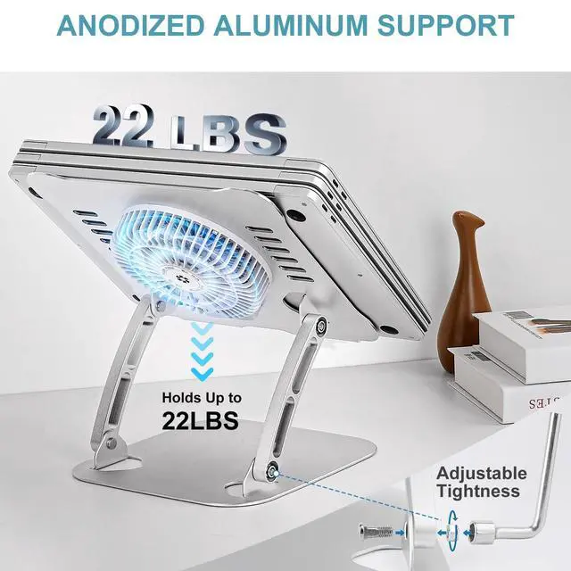 ^^ [Height and Angle Adjustable]- Working in your most comfortable position can boost your productivity and creativity. This laptop stand allows you to adjust freely the height to 11.8 inches adjust angle from 0 to 120 degrees, so you can comfortably work in sitting positions. ^^ [Anodized Aluminum Support]-This anodized aluminum laptop stand features a strong bearing force and can support as much as 22 pounds (10 kilograms). The solid base prevents your laptop from tipping over while you're using it, even if you are typing or drawing.