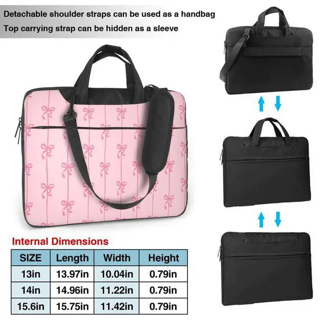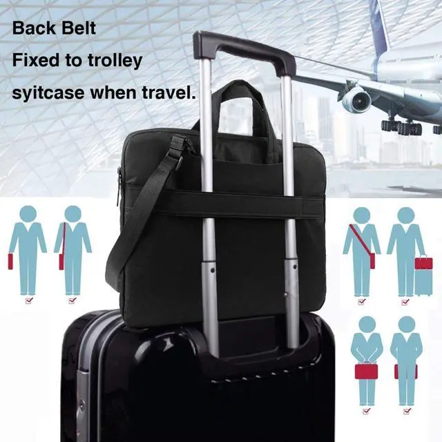 Options Include: Handle, Shoulder Strap, Detachable And Adjustable Shoulder Strap. The Removable Padded Shoulder Pad Is 18cm Long, And The Maximum Length Of The Shoulder Strap Is 112cm. When The Shoulder Strap Is Hidden, This Laptop Bag Can Also Be Used As A Handle-Style Laptop Sleeve. When Not Needed, The Top Handle Can Also Be Tucked Into The Pocket. ^^ Travel-Friendly Design Whether You Are Flying Or Commuting, Our Laptop Carry Bag Enhances Your Travel Experience With Added Convenience. Secure It To The Handle Of Your Suitcase For Hands-Free Travel, Making It A Practical Choice For Frequent Travelers. ^^ Multiple Size Options The Laptop Sleeve Is Available In Sizes 15.75 X 11.42 X 0.79 Inches / 14.96 X 11.22 X 0.79 Inches / 13.97 X 10.04 X 0.79 Inches (L X W X H). Featuring A Modern And Slim Design, It Meets Your Daily Use And Protection Needs.