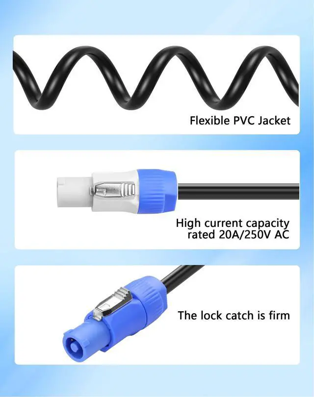PowerCon Power Cable: Heavy-duty 16AWG thick-gauge copper wires minimize resistance & overheating for stable power delivery to high-wattage gear like beam movers and LED walls ^^ Plug & Play Universal Stage Compatibility: Powercon cable powers all