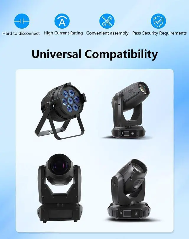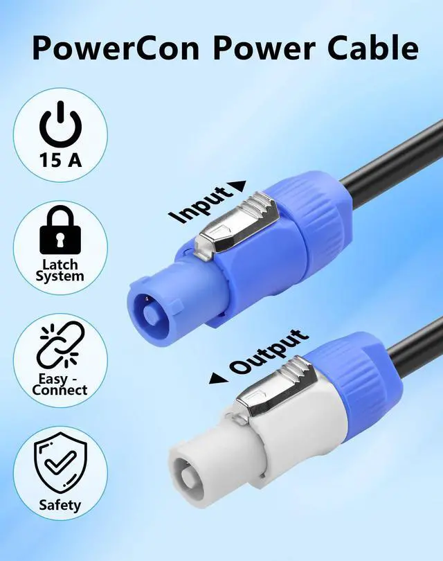 Secure Twist-Lock Connection: PowerCon-to-PowerCon connectors secure latch system prevents accidental disconnects mid-show, even in high-vibration stages ^^ Easy Connection