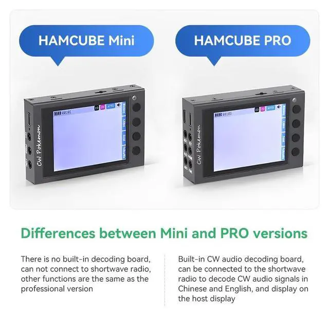 The difference between the professional version and the mini version: the professional version has a built-in CW audio decoder board, which can be connected to shortwave radio stations to decode CWs Chinese and English audio signals and display them on the host screen. The mini version does not have a built-in decoder board and cannot be connected to shortwave radio. Other functions are the same as the professional version