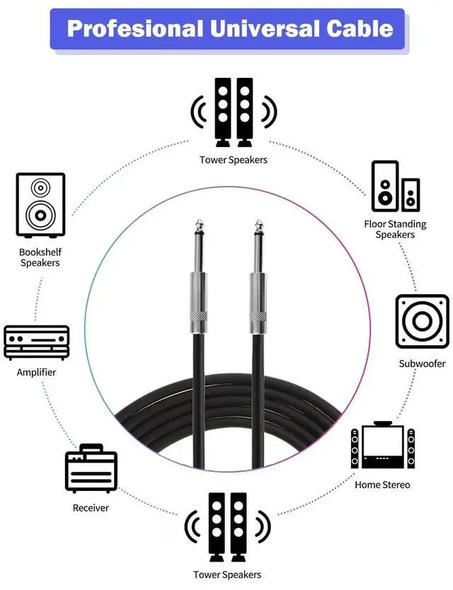 PackMaterial: PVC Jacket + Oxygen-Free Copper ConductorEnd 1: 1 /4''( 6.35 mm) Male SpeakerEnd 2: 1 /4''( 6.35 mm)