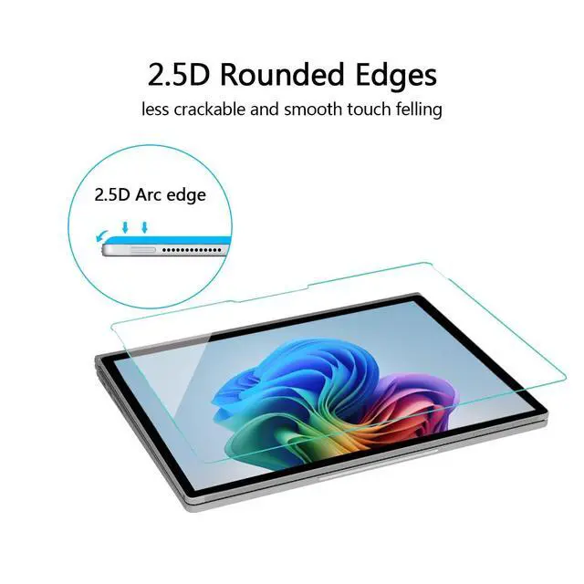 ^^ Smooth Touch, Seamless Experience Enjoy a silky-smooth touch with the oleophobic coating, ensuring a clean, fingerprint-free screen. Designed with precise cutouts and 2.5D rounded edges, it offers effortless navigation and compatibility with your Surface Pen. ^^ Crystal Clear Clarity with Added ComfortExperience high transparency for a vivid display thats easy on the eyes. The anti-bluelight feature enhances comfort, making it ideal for binge-watching your favorite shows or powering through online meetings. ^^ Hassle-Free Installation, Bubble-Free ResultsDesigned for easy application, our Surface Pro 11/10/9/8/X screen protector installs quickly and seamlessly, leaving no bubbles behind.