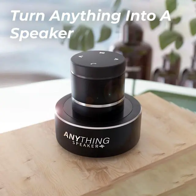 This portable mini wireless bluetooth vibration speaker turns anything into a speaker! Vibrations are transmitted into the surface its on to create a powerful bass and level (volume. ) Experience sound in a whole new way. Each surface produces a unique tonal quality. From bass-boosted lows to crystal-clear highs, find which surface sounds the best to you!