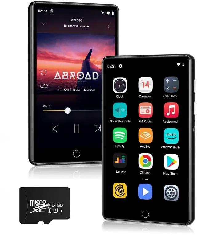 ^^ Bluetooth & WiFi: Fast, Stable Connection. Equipped with newly upgraded Bluetooth and WiFi wireless technology, this smart MP3 player connects to your Bluetooth headphones, car stereos, speakers, or mobile phones faster, more stably, and with no delay. It delivers a smooth, reliable data transmission experience, letting you enjoy your favorite music at home, outdoors, or during tripswe understand your needs better. ^^ HiFi Lossless Sound & Built-in Speaker This Spotify-compatible MP3 player features a built-in HiFi lossless speaker, allowing you to play songs or videos without headphones. It also supports synchronized lyrics display, free creation of multiple playlists, and custom equalizer settingsevery note comes alive, immersing you in a premium music feast.