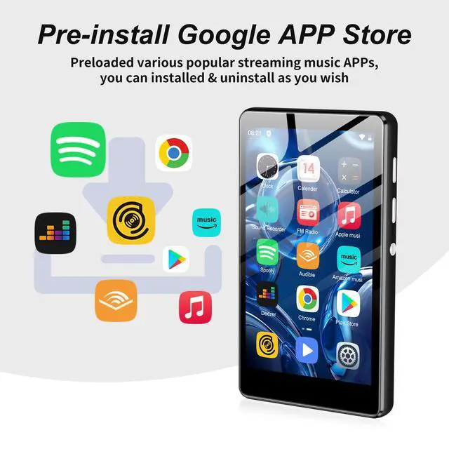 Supported music formats: MP3, OGG, FLAC, AAC, WAV, WMA, APE. ^^ All-in-One MP3 PlayerSWOFY multi-functional MP3 player comes with Bluetooth and WiFi, plus a rich lineup of pre-installed mainstream media appsincluding Apple Music, Spotify, Audible, Music, Deezer, as well as practical tools like FM Radio, Video Player, Calendar, and Recorder. It meets all your daily needs: listen to music, watch videos, or read e-books online or offline, bringing you more unexpected surprises.