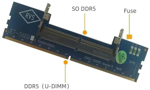 • 1. Supports SO DDR5 memory card to DDR5 U-DIMM for desktop PC, is not compatible for DDR5 R-DIMM memory.
