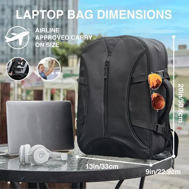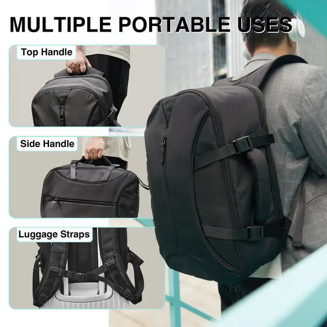 A side handle and luggage strap offer multiple carrying optionswear as a backpack, hand carry, or attach to a suitcase. ^^ [Durable & Water-Resistant] Made with heavy-duty 1000D Oxford fabric (1680D reinforced front) and 290D polyester lining for superior wear & water resistance. The anti-scratch interior protects valuables, while self-locking zippers & magnetic buckles add security and convenience. ^^ [Perfect Travel Companion] Fits airline carry-on size (20"x13"x9") for overhead bins. Ideal for flights, business trips, or daily commutes. The lightweight yet sturdy design ensures durability without extra weight. Stay organized & travel stress-free!
