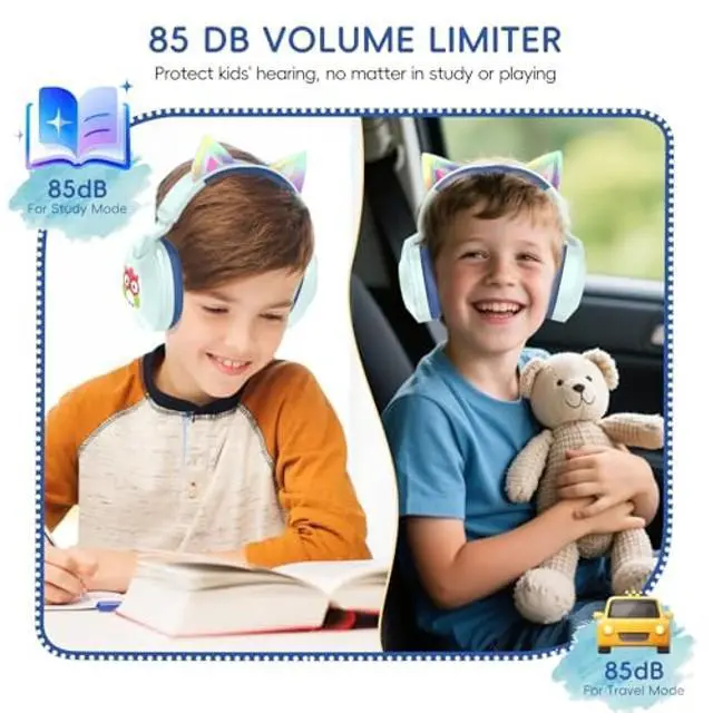 • Adjustable Volume Limit: Unlike other headphones with only a maximum volume, ours features an adjustable switch, allowing you to freely switch between 85 and 95 dB maximum volumes. This two-level volume adjustment effectively protects children's hearing, preventing excessively high or low volumes. (Double-click pause button)