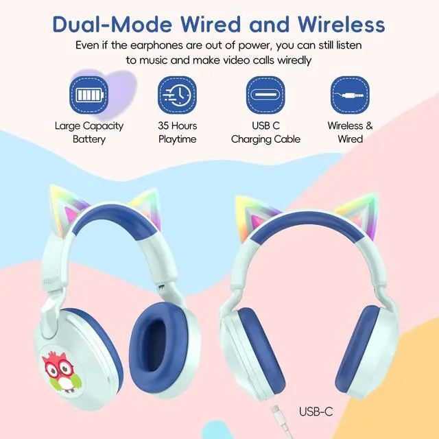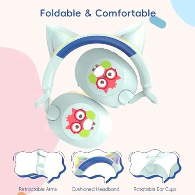 Cute Cat Ear RGB Lighting: The LOBKIN children's cat ear headphones not only boast excellent sound quality but also feature an adorable cat ear design and controllable RGB lighting. This fun design effectively attracts children's attention and motivates them to learn actively. (Single power button) ^^