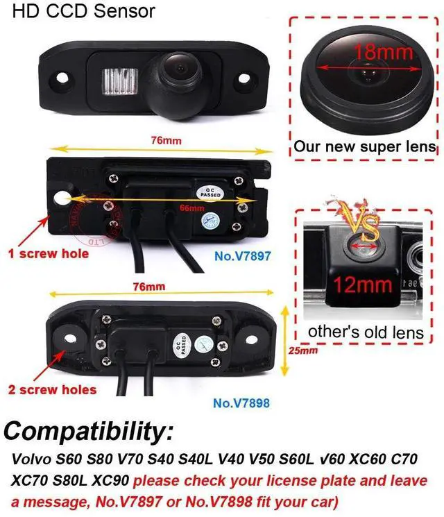 "Dear customer, please must check the camera size and appearance before place a order, see if can fit your car license plate place size and appearance! Because the same car model in different countries may have some difference, please check the camera size and compare the installation of your car carefully to avoid mistake. This product could fit for all below models as expected: Replacement for VOLVO S80 SI40 XC60 S40 C70 S80L S40L S80 S60L S40L XC90 S80L S60 s40L