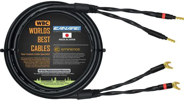 Custom Made - 3 Foot - Canare 4S11 - Audiophile Grade - HiFi Star-Quad Single Speaker Cable for Center Channel, terminated with Eminence 24k Gold dual-plated, low-profile audiophile banana and multi-spade connectors (2x Banana to 2x Spade). The cable consists of four (4), 14 AWG conductors (11 AWG when paired as in this cable assembly). Please refer to the detailed images in this listing for cable information and further details on the connectors. We at WBC always make world-class custom-built cable assemblies using many of the leading cable and connector brands, if you are unable to find the length and type of cable you are looking for, please feel free to contact us, and we will strive to assemble the required cable for you.