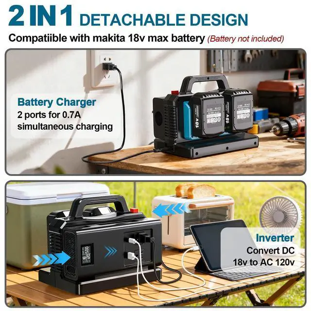 (NOTE: Inverter output is unavailable during charging. ) ^^ COMPATIBLE WITH MA-KITA 18V