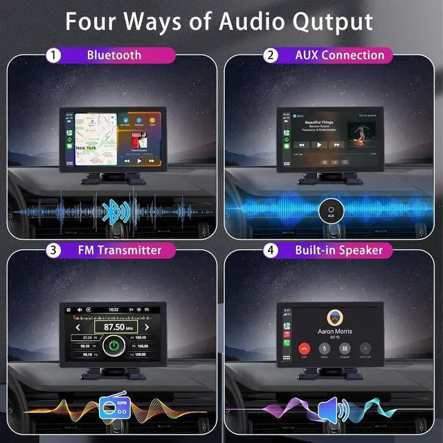 Audio Output Mode: Newly added Bluetooth connectivity to vehicle speakers significantly boosts audio quality during in-car playback. Experience immersive stereo sound through your car stereo system, or access audio via AUX input, FM transmitter, and built-in speakeroffering flexible options to enjoy your favorite music and audio content.