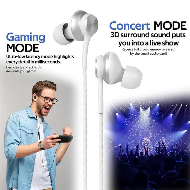 Experience unprecedented audio versatility with this advanced USB-C in-ear headset equipped with multiple modes. The KTV mode offers one-touch vocal enhancement and real-time feedback, delivering an immersive singing experience. Studio mode utilizes smart noise reduction technology to provide clear vocal monitoring, ideal for recording and content creation. Concert mode makes you feel as if you are at a live performance, while Game mode's ultra-low latency design captures every audio detail within milliseconds. The headset integrates a built-in high-fidelity sound card and an independent matrix microphone, achieving exceptional audio processing. Compatible with the latest iPhones, Samsung smartphones, desktops, and laptops, it performs excellently in both video conferencing and gaming scenarios.