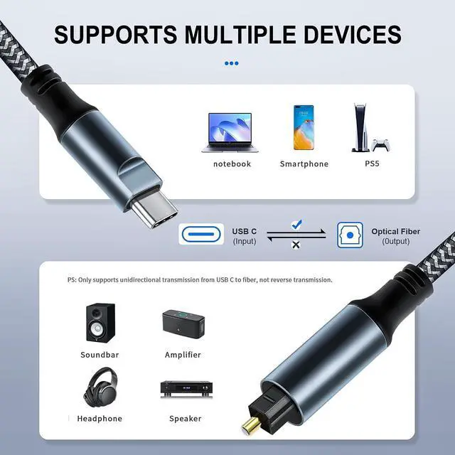 ^^ Widely Compatible: Seamlessly connects USB-C devices (smartphones, tablets, laptops, and game consoles)to optical audio systems (amplifiers, speakers, sound bar or headphone amplifiers with optical inputs)for lossless high-speed data transfer.