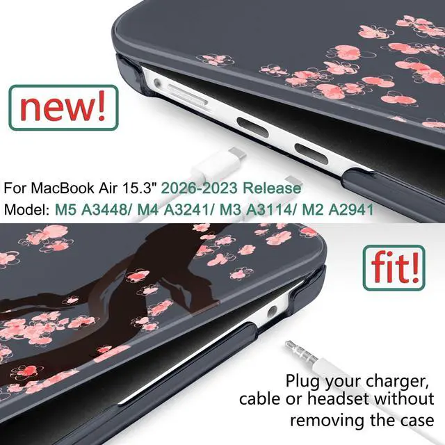 Compatibility -- Only designed for MacBook Air 15 Inch 2026 2025 2024 and 2023 with Touch ID and Liquid Retina Display (Models M5 A3448, M4 A3241, M3 A3114, M2 A2941). Check your device model before purchasing. ^^ Durable Material -- Made of hard plastic to protect against scrapes and scratches without adding bulk. Features long-lasting, vibrant patterns. ^^ Easy Installation & Removal -- Micro clips ensure secure attachment and easy removal. ^^ Ventilation -- Ventilation holes at bottom for safe heat dissipation and raised rubber feet prevent slipping ^^ Complete Package -- Includes a protective case, a keyboard cover, dust plugs, and a screen protector.