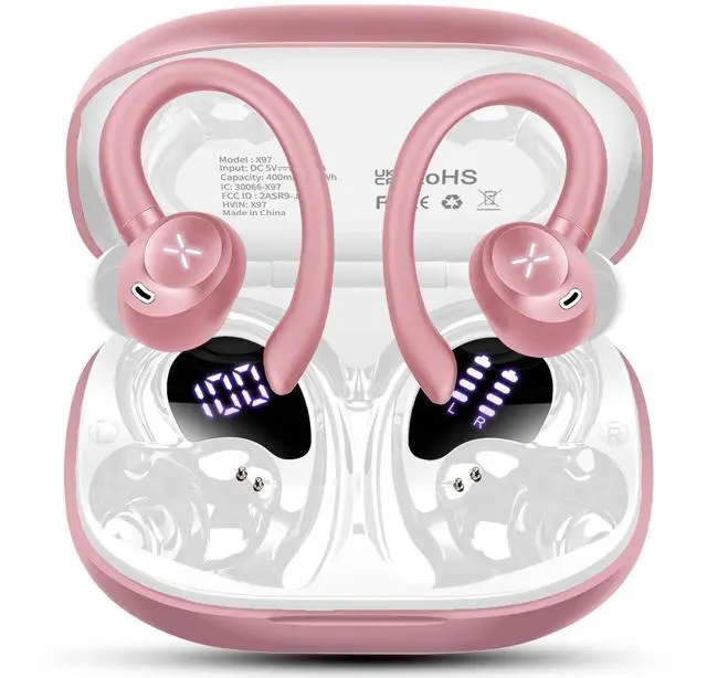 Immersive Sound & Noise-Free Calls: Our custom 14mm dynamic drivers deliver crystal-clear highs, rich mids, and powerful, deep bass. The noise cancelling earbuds built-in noise-cancelling microphone ensures clear calls, even in noisy environments, making it perfect for music, calls, and voice assistants. Enjoy uninterrupted conversations with superior clarity, regardless of your location. ^^ Marathon Battery Life & Type-C Fast Charging: Running headphones provides up to 8-10 hours continuous using time on a single charge, portable charging case can charge the earbuds for 5-6 times, giving 50 hours of a total playtime. A quick 1.5 -hour charge gives you a full day of power, making them the perfect, reliable companion for long training sessions, commutes, and workdays. ^^ Real-Time LED Display & Smart Touch Control: The dual LED screens on the case display precise battery levels at a glance, so youll never run out of power mid-workout. Manage your music, adjust volume, and answer calls effortlessly with the wireless headphones' one-button control. Enjoy hassle-free control right at your fingertips.