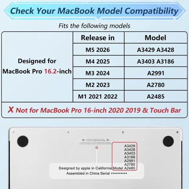 Compatibility Warning: Not fit for MacBook Pro 16 inch 2020 2019 release Model A2141. Please make sure that it is correct before purchasing, so as not to buy a case that does not fit your computer. ^^ Plastic Hard Shell Case Design for