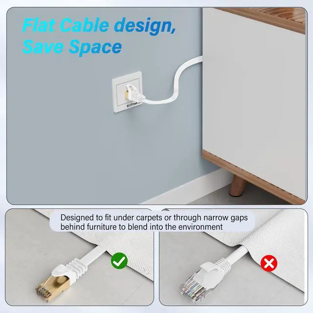 Our AdvantagesPremium eco-friendly LLDPE outer jacketwaterproof, frost-resistant, UV-resistant, and wear-resistant, ideal for indoor and outdoor----Ultra-thin flat design (thickness: 0.11 - 0.13 inches, width: 0.32 - 0.45 inches, depending on length) allows easy installation along walls, corners, under doors, or carpets, making it perfect for homes, offices----Flexible and ultra-thin for easy storage, helping you manage cables quickly and neatly, reducing tangles and knots while improving installation efficiency. ----Rigorously tested to ensure high performance and stability---- Available in multiple lengths from 10ft to 200ft for different scenarios ^^