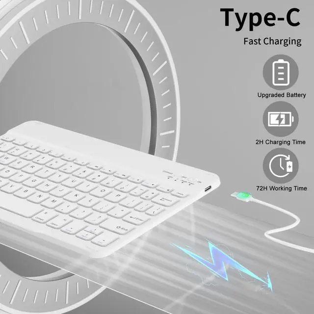 Rechargeable design: BT auto-connects in 3 seconds, stable connection up to 33ft (10m) - no lag for remote meetings/essay typing. Built-in 400mAh battery, 2hrs full charge supports 30 days standby or 72hrs continuous use (USB-C cable included) ^^