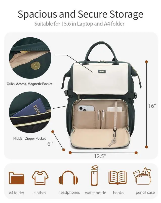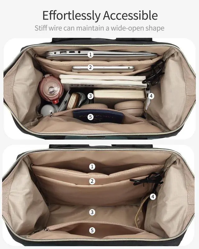 Wide-Mouth Access: Practical Backpack with 5 compartments and 15 pockets help keep items organized, from binders and books to smaller essentials like pens and keys ^^ Suitable for